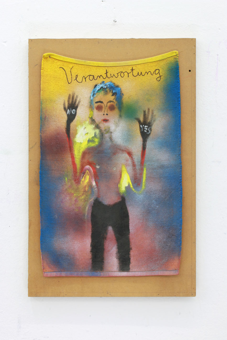VERANTWORTUNG, oil and acrylic on carpet, 105 x 68,5 cm -