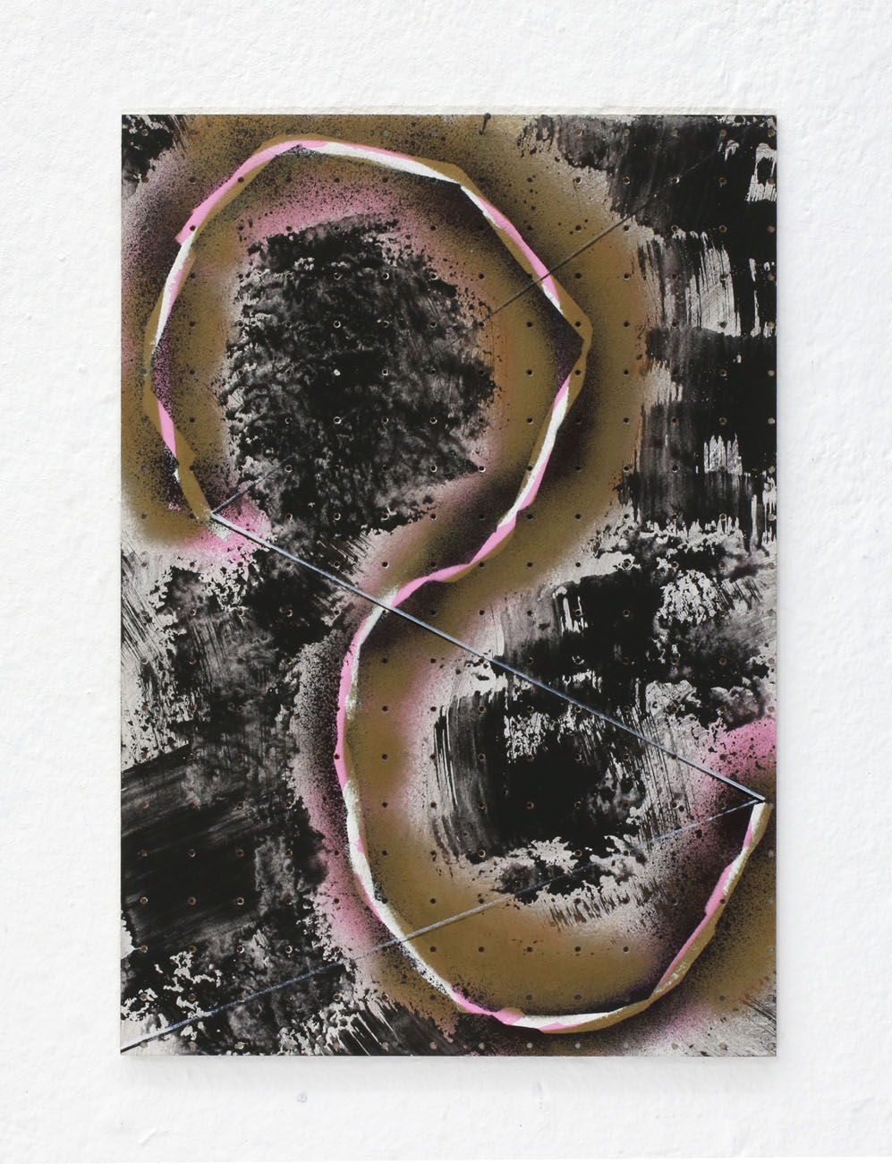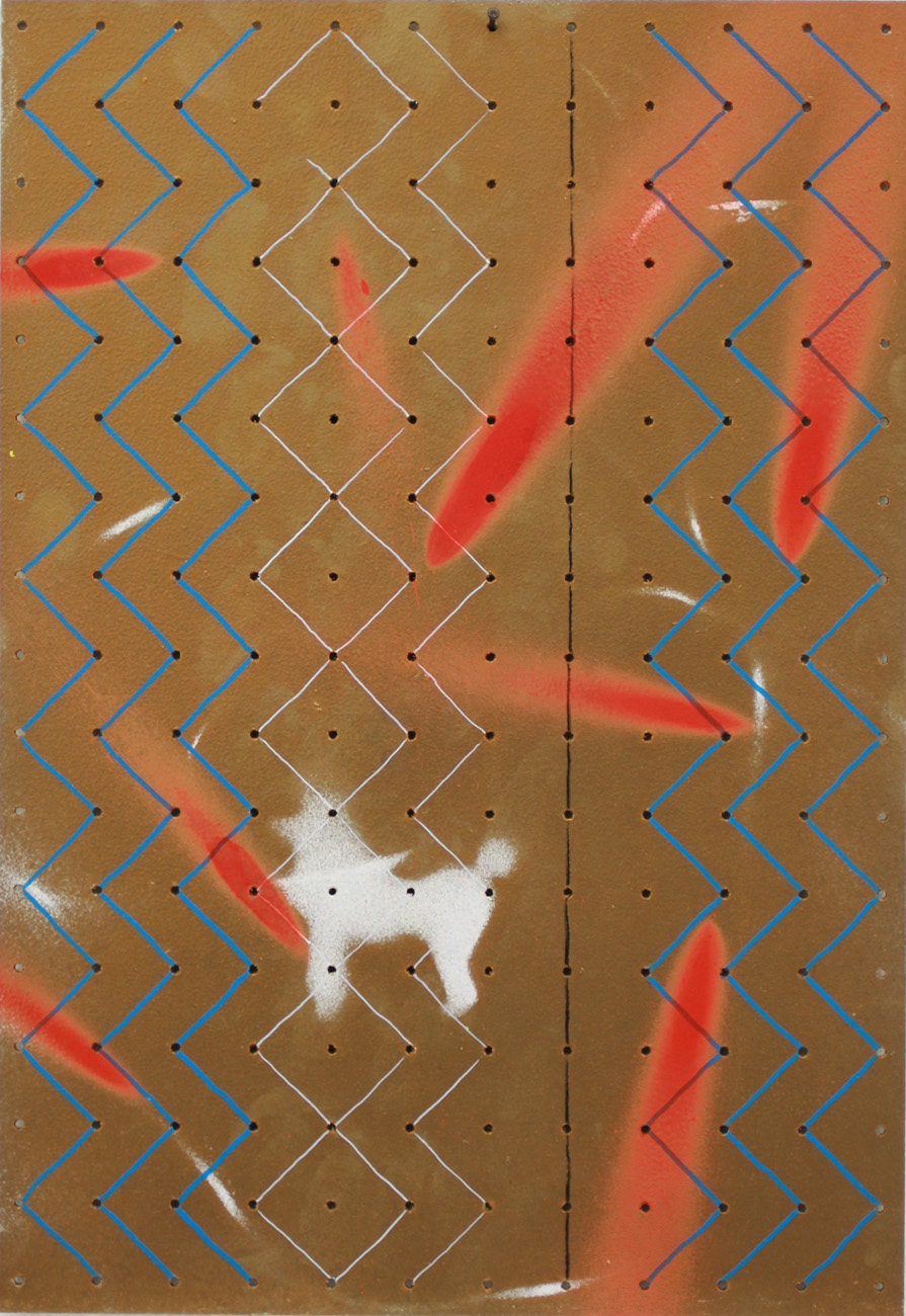 DES PUDELS KERN, acrylic on perforated plate, 42 x 29 cm, 2017