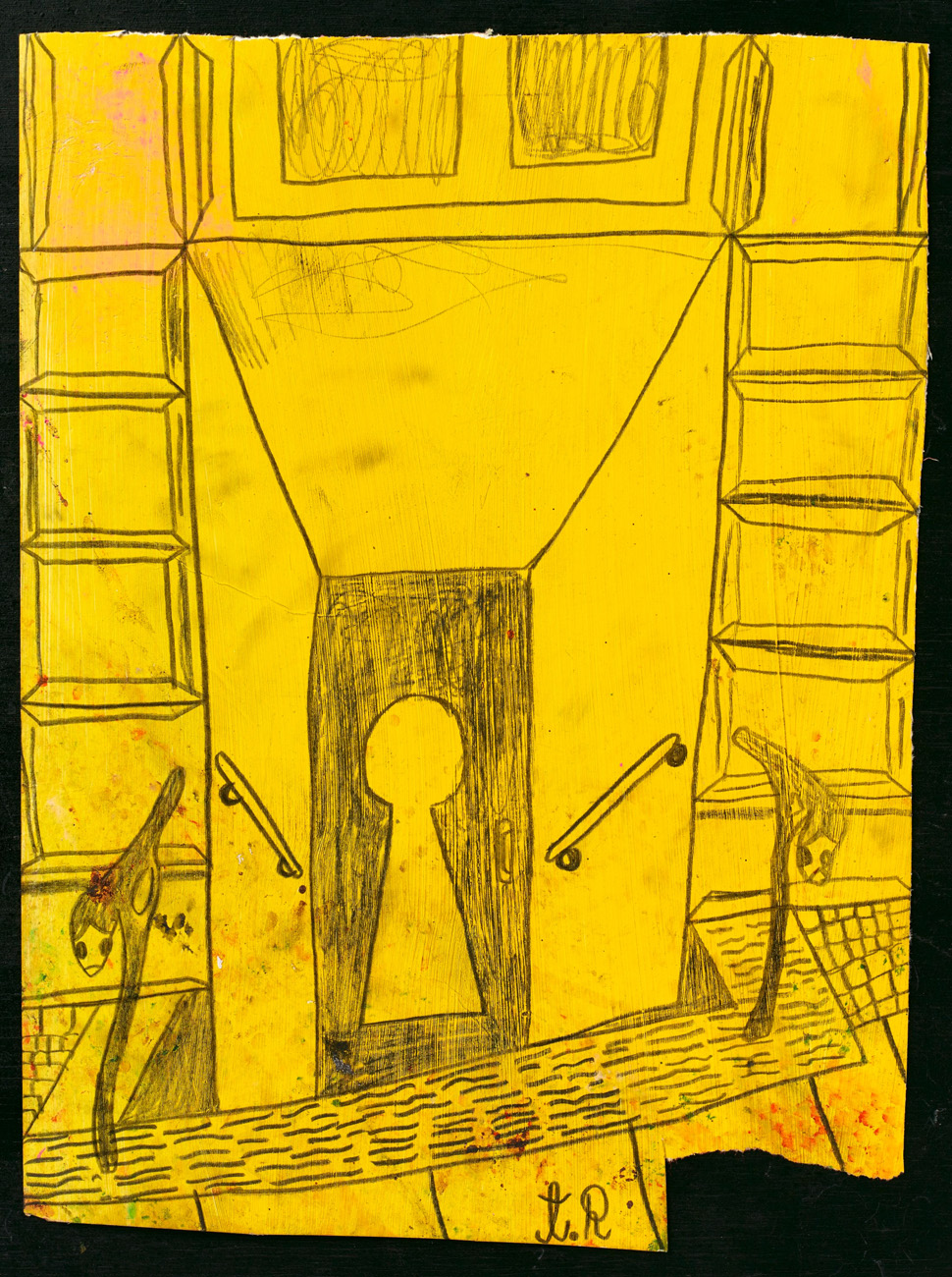 KEYHOLE, colour pencil and gouache on painted cardboard, 35 x 26 cm, 2016
