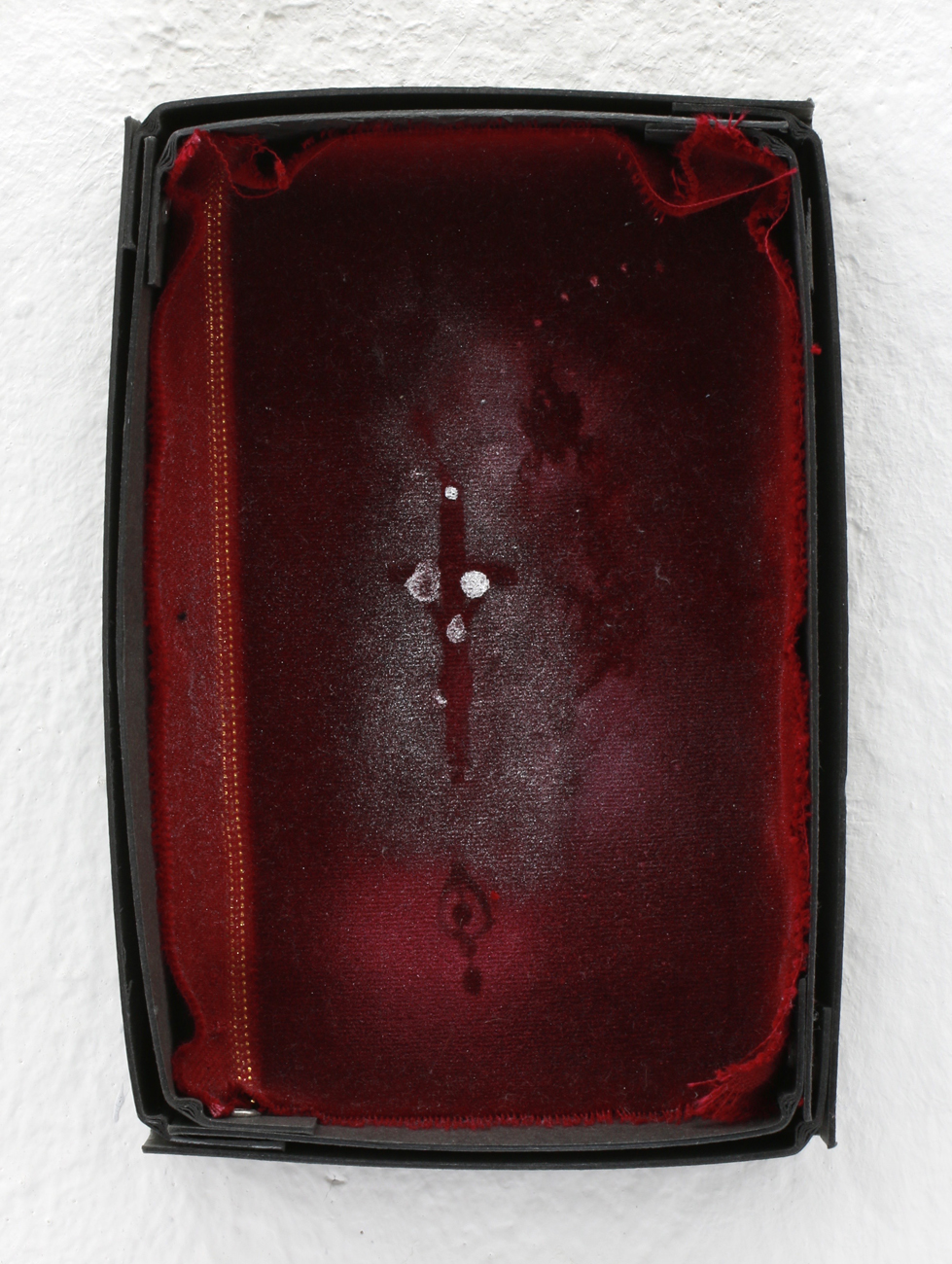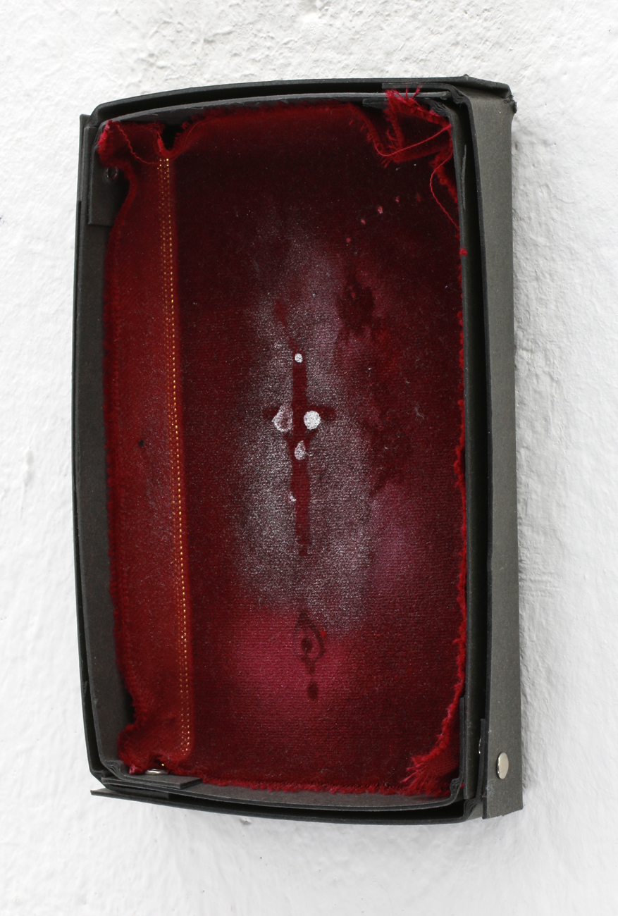 ROSARY, Seitenansicht, spraypaint on velvet in cardboard box, 19,5 x 13,5 x 2,5 cm, 2015